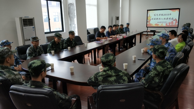 9月17日下午1点,电气学院在学院楼410会议室召开了2018年欢送新兵入伍座谈会。座谈会由电气学院党委副书记张跃辉同志主持,学院党委书记杨幼君同志出席了座谈会,学工办辅导员代表、19位新兵以及家长代表、退伍士兵代表共同参加了本次座谈会。