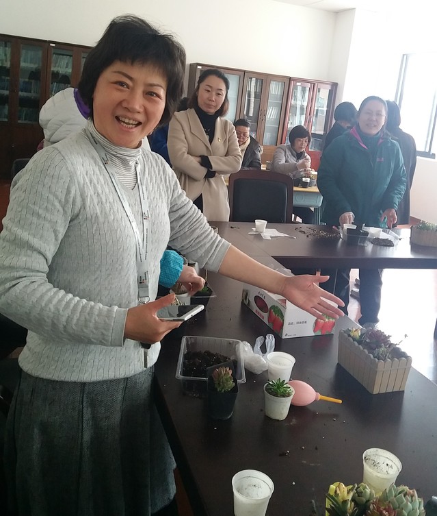 为庆祝第108个“三八”国际劳动妇女节,丰富女教职工的文化生活,3月16日,电气学院分工会组织全体女教职工在电气楼508举行多肉植物种植活动。