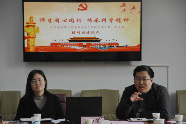 12月13日,本着“双向互动、优势互补、资源共享、合作共建”的原则,机关党委第九党支部与电气学院研究生第一党支部结对共建仪式在行政楼316会议室举行。机关第九党支部全体党员和电气学院研究生第一党支部全体党员参加了本次活动。本次活动以“师生同心同行,传承科学精神”为主题,旨在加强两党支部间的交流,实现资源共享、互帮互助,加深党员们对科研诚信的认识。