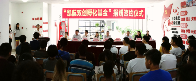 金秋校园,果熟花香。9月27日,“凯航双创孵化基金”捐赠签约仪式在电气学院“78同心园”隆重举行。校党委书记孙培雷、工电7856班校友曹德华,校教育发展基金会、校友会、上海凯航通力船用设备有限公司、电气学院师生代表共60余人共同见证这具有深远意义的感动时刻。