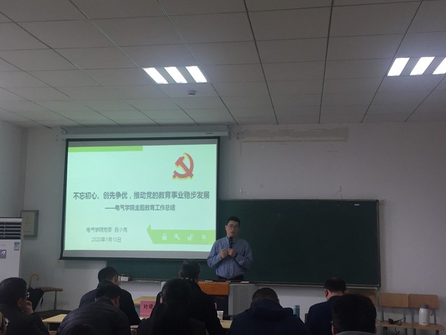为贯彻落实中央精神,按照学校统一要求,同时结合学院党委开展此次主题教育的实际情况,1月10日下午1点,电气学院在电气楼301召开了“不忘初心、牢记使命”主题教育总结大会。学校党委副书记陈信、校专职组织员时晓建同志出席主题教育总结大会。学院党政班子成员、党委委员、三级机构负责人、党支部委员、党员代表参加本次总结大会。会议由学院院长兼党委副书记陈国初同志主持。