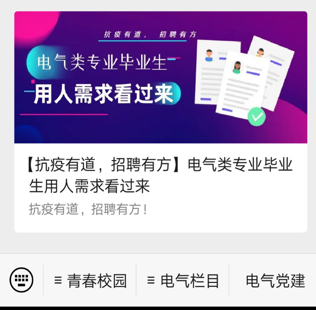 抗疫时期,电气学院全体师生将共克时艰抗疫情,携手互助促就业。我们将充分动员每一位同学积极就业,持续关注每一位同学的就业需求,主动加强每一位就业困难同学的指导!