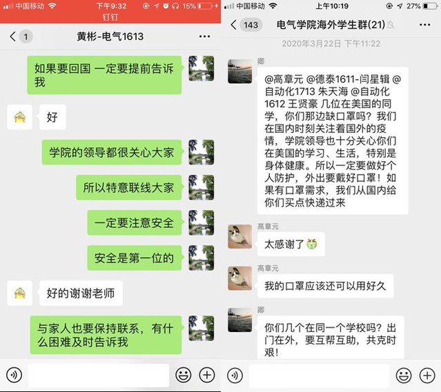 同学们纷纷表示:相隔万里,心却相连,自疫情发生以来,感受到学校学院送来的一阵阵暖流,他们会稳定心态,理性面对,互通信息,刻苦学习,用最好的状态面对疫情的攻坚战!(潘娜)
