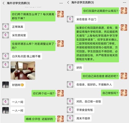 目前,电气学院有9名访学师生、10余名海外实践基地师生及海外名师在海外。为畅通与海外师生的联系通道,学院疫情防控工作小组紧急摸排相关情况,第一时间建立并落实“一对一联系”方案,不分时差与海外师生保持动态联系,持续关注海外师生的身体健康状况,提醒他们做好个人防护。