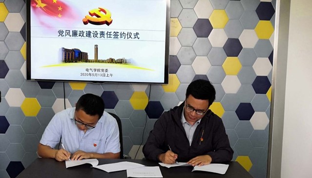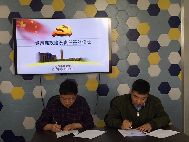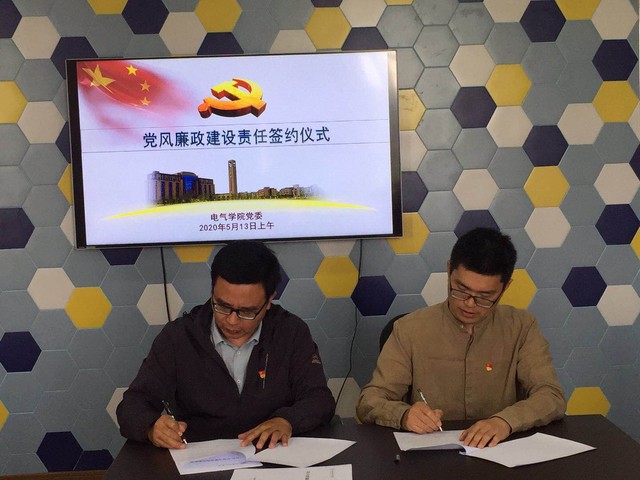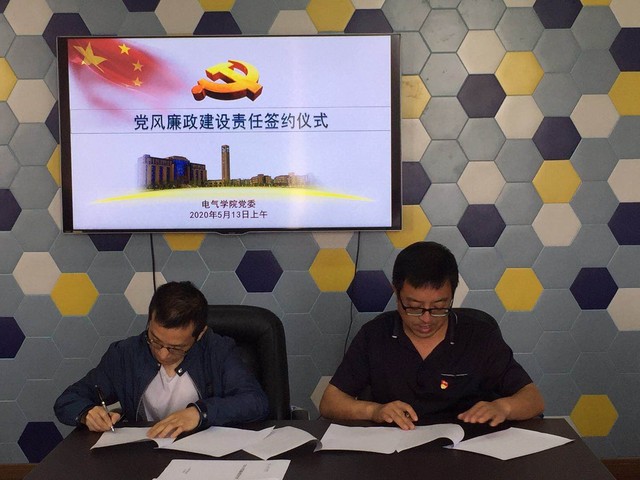 5月13日,电气学院2020年党风廉政建设责任书签约仪式在电气楼401举行,全体党政领导班子成员与三级机构负责人参加了本次签约仪式。