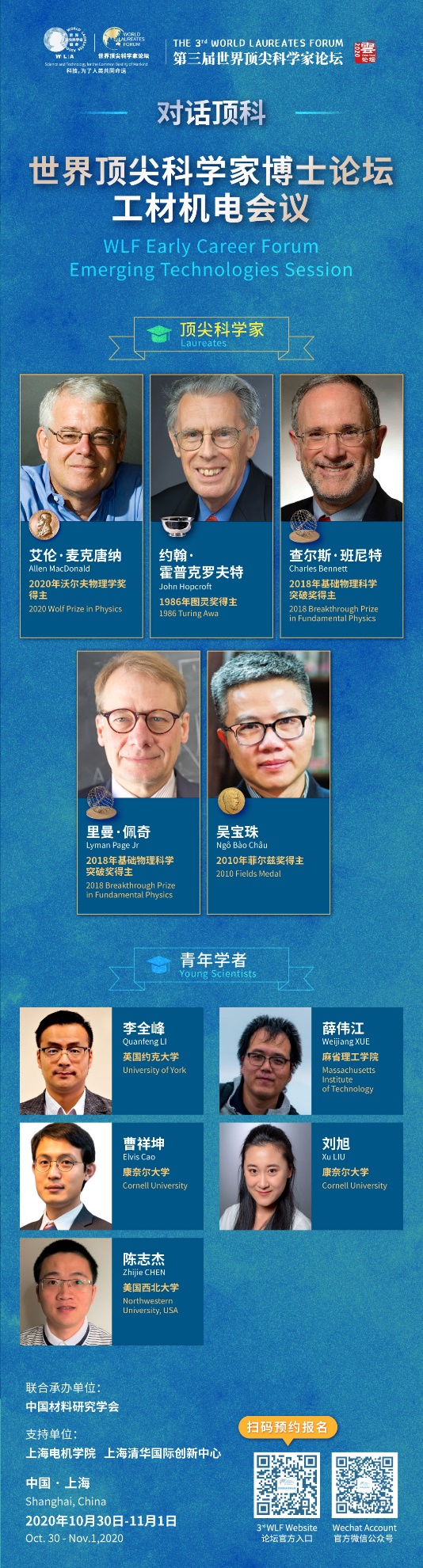 2020年10月30日-11月1日,电气学院教师李全峰博士受邀参加了第三届世界顶尖科学家论坛(The 3rd World Laureates Forum)之青年博士工材机电会议。这是我校青年学者第一次受邀参加该论坛。