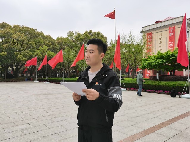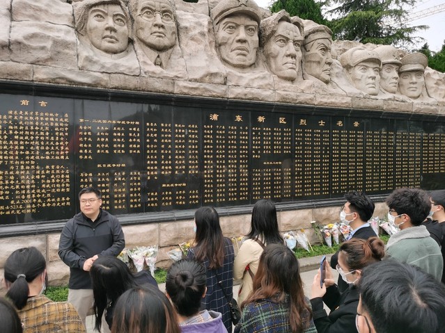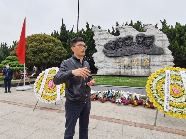 最后,在镌刻着浦东地区500多名革命烈士英名的烈士英名录墙前,浦东新区革命烈管所所长齐海冬为大家上了一场生动的情景党课。他动情地讲述了川沙烈士陵园安葬着在第一、第二次国内革命战争时期、抗日战争时期和解放战争时期为国捐躯和解放后在保卫祖国、抗洪抢险斗争中光荣牺牲的378位烈士,但是至今还有一些佚名者,这些革命烈士的生命虽然短暂,但是他们为国捐躯的精神浩气长存,没有革命先烈的抛头颅洒热血、前仆后继,就没有今天的新中国。最后他语重心长地讲到,“作为新时代的我们,一定要饮水思源,牢记革命先烈遗志,传承弘扬红色基因,不忘初心,砥砺前行”。