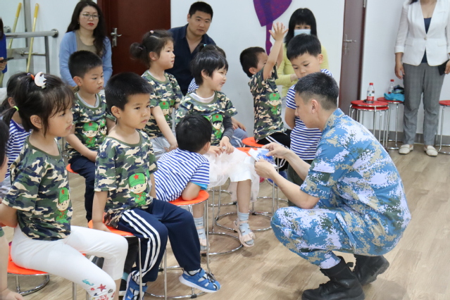 此次活动本着“用军人的优秀品质影响孩子”的教育宗旨,以军营文化为主线,为孩子们开设一门生动的国防教育课程。