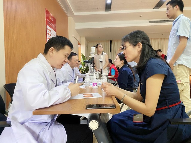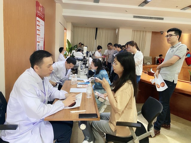 6月16日一早,上海市眼病防治中心的眼科专家陆士恒主任和赵立全主任带着他们的团队医生、检查设备等来到电机校园,先后分行政楼345和电气楼508两个现场进行检查和咨询活动,吸引了许多师生前来检查或咨询,眼压、眼底检查、电脑验光、裂隙灯等各项检查有条不紊地进行。