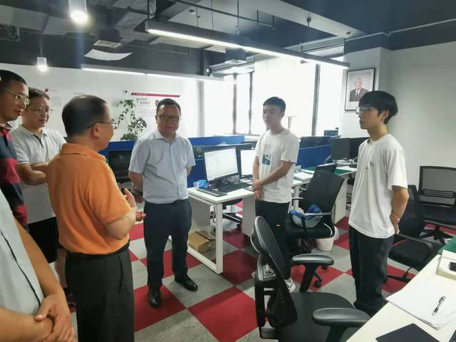 随后,在陈荣波的陪同下,陈国初一行走访了公司研发室,看望暑期实习学生,陈国初详细了解了学生实习工作近况,并勉励大家充分把握实习机会,将所学知识运用到实习环节中去,在夯实专业基础的同时着力提高自己的实践技能。卿海龙肯定了同学们不畏酷暑、深入企业一线开展科研实践的精神,他叮嘱同学们一定要遵守企业规章制度,加强实习安全意识。