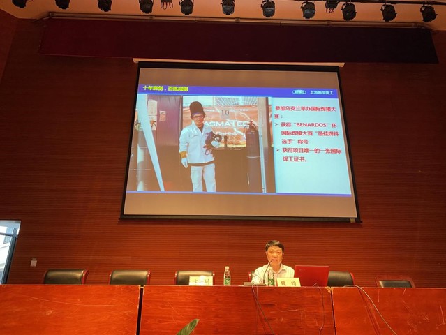 讲座中,魏钧同志结合自身工作实践,用平实的语言,讲述了一线电焊工人精益求精顽强拼搏的成长成才故事。魏钧同志讲到不会讲英语的他出差到荷兰,受到了全程中文的接待,心中涌起的祖国强大之后油然而生的自豪感;也讲到面临美国工程师自豪的指出现在焊接行业的标准仍然是美国制定时,心中暗暗涌出责任感和使命感,引起了广大师生的震撼!他指出,经过改革开放40年的发展,我们国家全面建成了小康社会,这是中华民族的伟大光荣,我们国家要由制造大国到制造强国的转变,打响制造品牌,新时代的产业工人要明确自己的使命担当并持续开拓创新,只有牢记匠心,不忘初心,敢啃硬骨头,突破技术瓶颈,才能在面对一个个“世纪工程”时,真正做到“焊枪在手中,责任在肩上”。