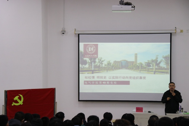 11月23日晚上18时,电气学院第40期入党积极分子培训班第三讲在D教105进行,担任本次主讲的是电气学院党委副书记、副院长卿海龙老师,本次党课的主题是“知校情、明院史、以实际行动向党组织靠拢”。