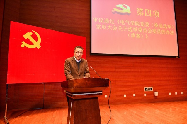 出席会议的全体党员,以高度的责任感、主人翁的态度,认真听取刘俊同志所做的党委工作报告。经过充分民主审议,全体党员一致通过了上届党委工作报告。随后,受大会委托,冯雯雯同志向大会作《电气学院党委关于党费收缴、使用和管理的工作报告》,卿海龙同志宣读《电气学院党委(换届选举)党员大会关于选举委员会委员的办法(草案)》,刘俊同志宣读校党委同意下届委员会委员候选人预备人选的批复,分别经大会审议通过。