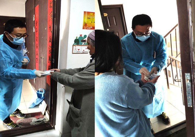 和揭俊伟一样,岳宁同志第一时间到社区报到,分配做社区志愿者,他无数次往返底楼到顶楼,为居民分发物资,耐心为老人讲解测试方法,每一步都一丝不苟。