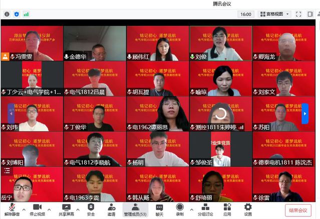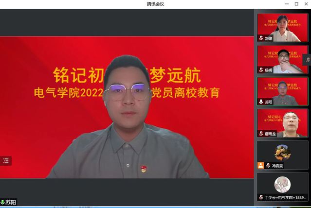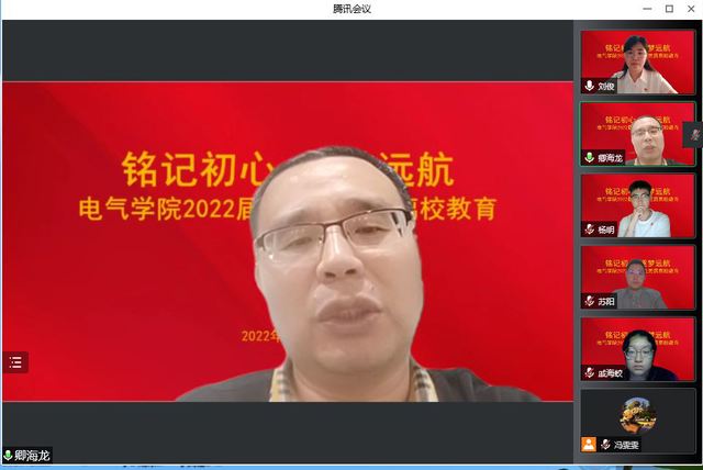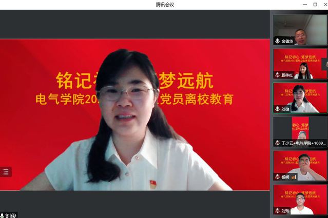 6月14日晚6点,电气学院以“铭记初心 追梦远航”为主题线上召开毕业生党员离校教育大会,电气学院党委书记刘俊、党委副书记卿海龙、专职组织员、各学生党支部书记、全体毕业生党员参加。