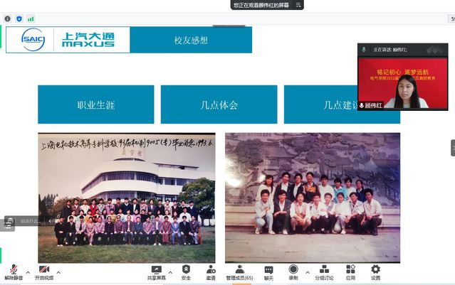 教育大会上,电气学院邀请1982届校友、上海市电气集团总公司首席技师金德华,1993届校友、上汽大通汽车有限公司副书记顾伟红作为党员校友代表与全体毕业生党员面对面交流,鼓励广大毕业生党员奔赴广阔的基层一线建功立业。金德华校友从自身的成长经历出发,讲述了党员的要求和工匠的要求是相得益彰的,并语重心长地从苦干、能干、肯干、巧干与同干五个方面涵养工匠精神,做企业需要的工匠。顾伟红校友深情地讲述了自身从基层技术人员成长为企业领导干部的历程,希望毕业生党员以事业感、成就感和责任感撑起国之脊梁,以善学习、勤思考、敢创新增强干事创业的本领,以只唯实、乐奉献、有韧劲展现优秀品行操守,青年党员在工作岗位上要尊重历史、弘扬优良传统,做到尊重人、成就人,做好当下、感恩拥有又要着眼长远、稳步前行。毕业生党员结合自身实际,跟两位校友展开了积极的互动交流。