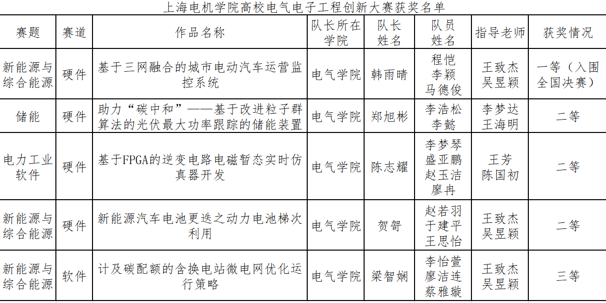 据悉,全国高校电气电子工程创新大赛是由中国电工技术学会主办,清华大学、华北电力大学、北京交通大学、北京理工大学和天津大学共同发起的一项高水平赛事,教育部高等学校电气类专业教学指导委员会进行全程指导。该赛事旨在鼓励高校学生积极开展探索性工程实践活动,推动高校工程教育与工程实际紧密结合,切实培养学生实践创新能力及解决复杂工程问题的能力,同时促进教师将理论教学与工程实践相结合。本届大赛聚焦“新能源与综合能源”、“未来电网”、“储能”和“电力工业软件”等四个热点方向,按照软件和硬件赛道分别评审。我校学生能与多所双一流等华东赛区电气工程学科优势明显的高校竞争中获得优异的成绩,是对我校相关国家、市一流专业建设点的有力支撑,也是对相关教学科研和学生能力的高度肯定。(撰稿:王海明;审核:卿海龙)