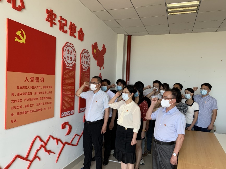 最后,与会党员佩戴党员徽章,在学院党委书记刘俊同志的带领下,共同举起右拳,面向鲜红的党旗庄严宣誓。(撰稿/摄影:张鑫、冯雯雯;审核:刘俊)