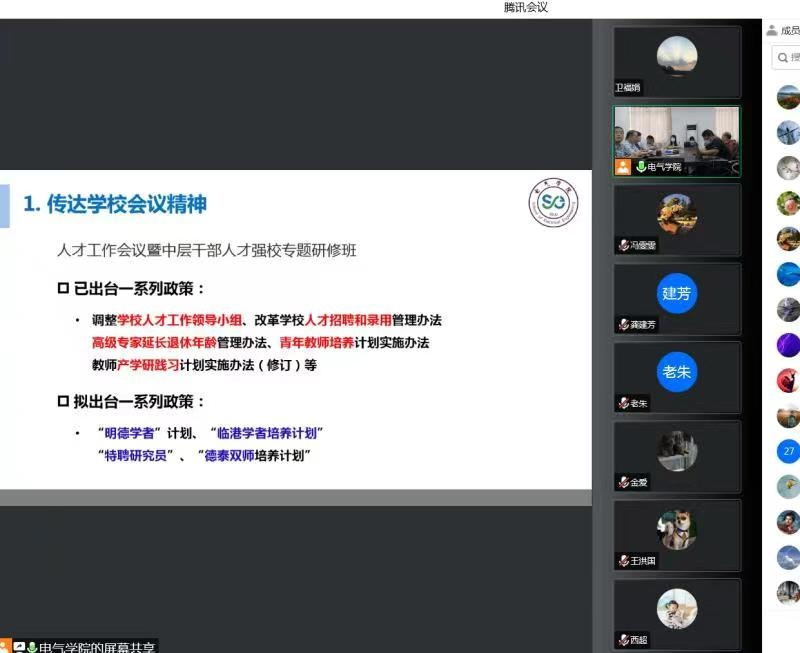 9月16日下午,电气学院通过线上线下相结合的方式召开2022-2023学年秋季学期全院大会,学院党政班子和全体教职员工参加了会议,会议由学院党委书记刘俊主持。