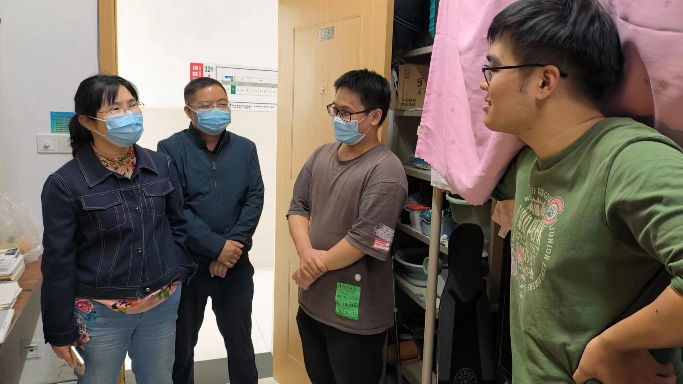 关心关爱学生有温度,做学生的知心人。近日,电气学院全体党政班子带领辅导员深入学生宿舍,叮嘱同学们严格遵守学校疫情防控相关规定,详细询问了同学们在课程学习、考研升学、求职就业、校园生活等方面的情况,对学生关心的问题作了认真解答。针对不同年级提出不同的学习、生活建议。走访过程中,学院院长陈国初细心询问新生来校后的生活和适应情况,了解大家的家乡和高考情况,轻松的话语迅速拉近了彼此间的距离。陈国初反复强调身体是学习的前提,引导学生“自己是健康第一责任人”,鼓励同学们加强体育锻炼,积极参加相关活动,提高综合素质,共同学习进步,努力成为对学院、对社会和对国家有贡献的人才。党委书记刘俊在和毕业班学生交流时期望学生:树立正确的就业观,在了解到不少同学报考我校研究生时,刘俊鼓励同学们认真复习,争取继续在我校攻读研究生,还鼓励未就业的同学抓住秋招黄金期,多关注临港就业单位和岗位,尽快找到满意的工作,迎接更大的挑战。