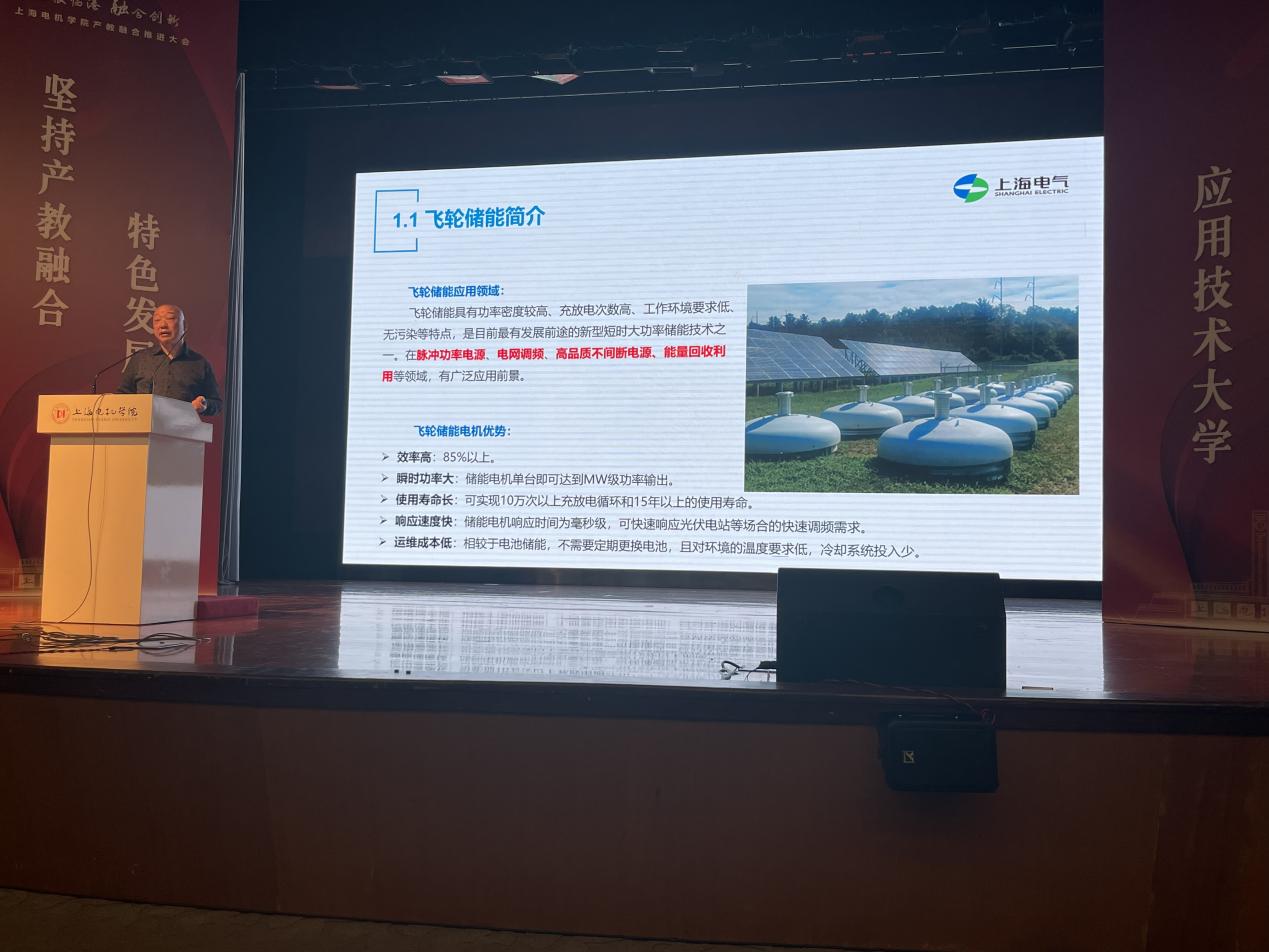 袁建华围绕飞轮储能技术,向同学们介绍了飞轮储能原理、飞轮储能电机的优势与应用等内容,并结合国内外技术发展现状和趋势,深入浅出地介绍了双碳背景下飞轮储能的应用前景、高速单极电机开发等前沿知识,不断激发同学们的学习热情。他还结合上海电气集团通过努力钻研核心技术成为国内行业的领先者的实例,激励同学们要好好学习,刻苦钻研专业知识,学好专业技术,为毕业后的发展打下坚实基础。