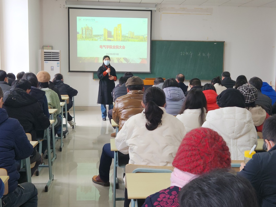 2月10日上午,电气学院在电气楼301召开2022-2023学年春季学期全院大会,专题学习了学校中层干部能力提升•人才培养专题研修班会议精神,学院党政班子和全体教职员工参加了会议,会议由学院党委书记刘俊主持。