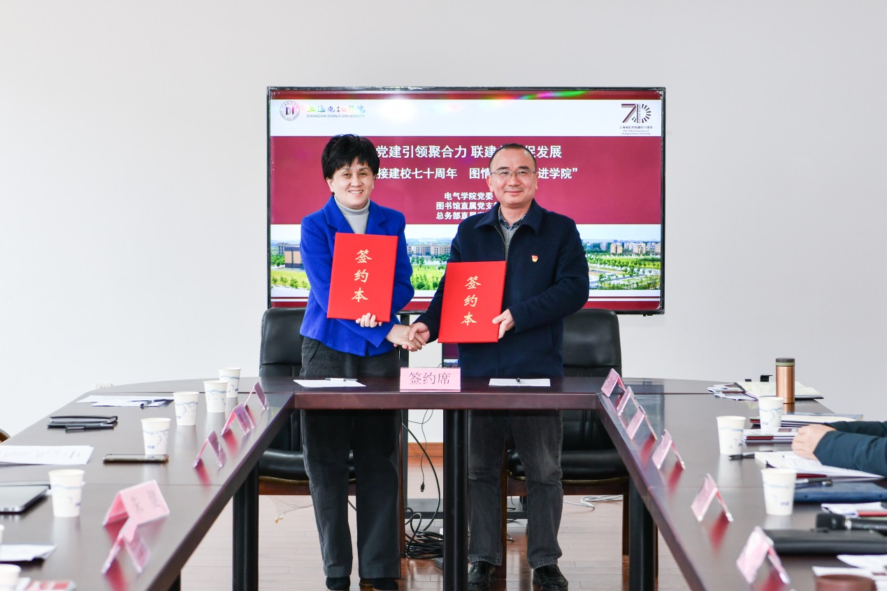为进一步推动联建共享促发展常态化运行,图书馆馆长张慧文与电气学院院长陈国初进行共建电子资源专项数据库签约,图书馆直属党支部与电气学院第六党支部共建“图情服务工作站” 签约,后续双方将在数据库采购培训与咨询服务、图情服务公益活动、志愿服务互助合作、联合主题党日活动、图情咨询服务“传帮带”等方面开展深入实现互帮互助,优势互补,推动党建工作与业务工作深度融合,以高质量党建推动高质量发展。