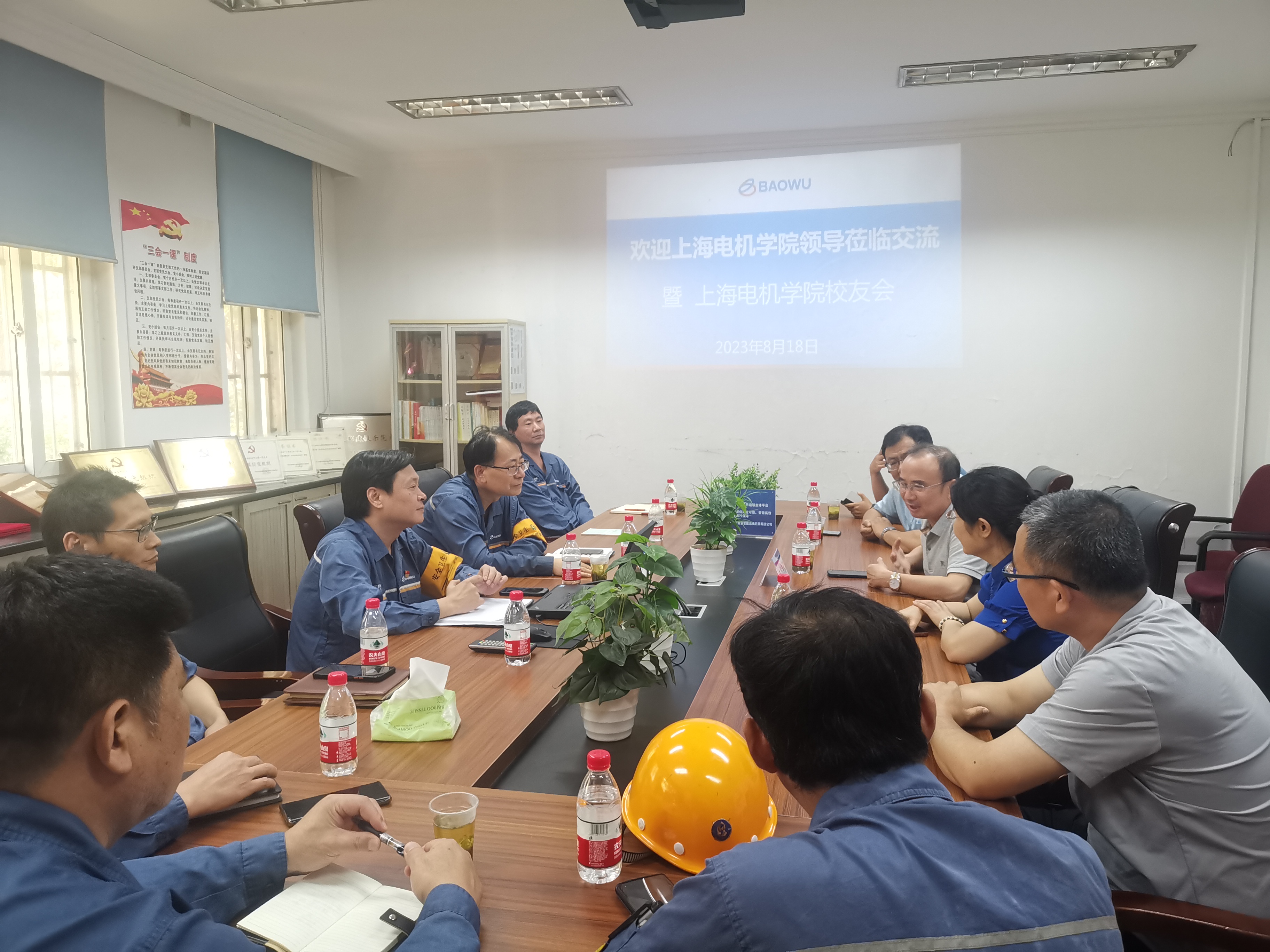 为推动主题教育走深走实,探索党建共建新模式,促进产教融合深入发展,推进“欧冠官方网站入口高压电机智能运维专业技术服务平台”建设,了解校友成长,拓展校友资源助力“昂电卓越班”人才培养,8月18日,电气学院党委书记刘俊、院长陈国初带队赴宝武装备智能科技有限公司走访调研,副书记卿海龙、副院长冯肖亮、电机未来技术研究中心主任赵爱明陪同参加。宝武装备智能科技有限公司检修事业部党委副书记、主持工作副总经理孟宇,副总经理郭帅、产品服务中心主任刘鹏、书记范洪亮,欧冠官方网站入口校友代表,全国五一劳动奖章获得者、上海市劳动模范、上海工匠吉志勇校友及朱建国、张协、金岚等校友出席活动。