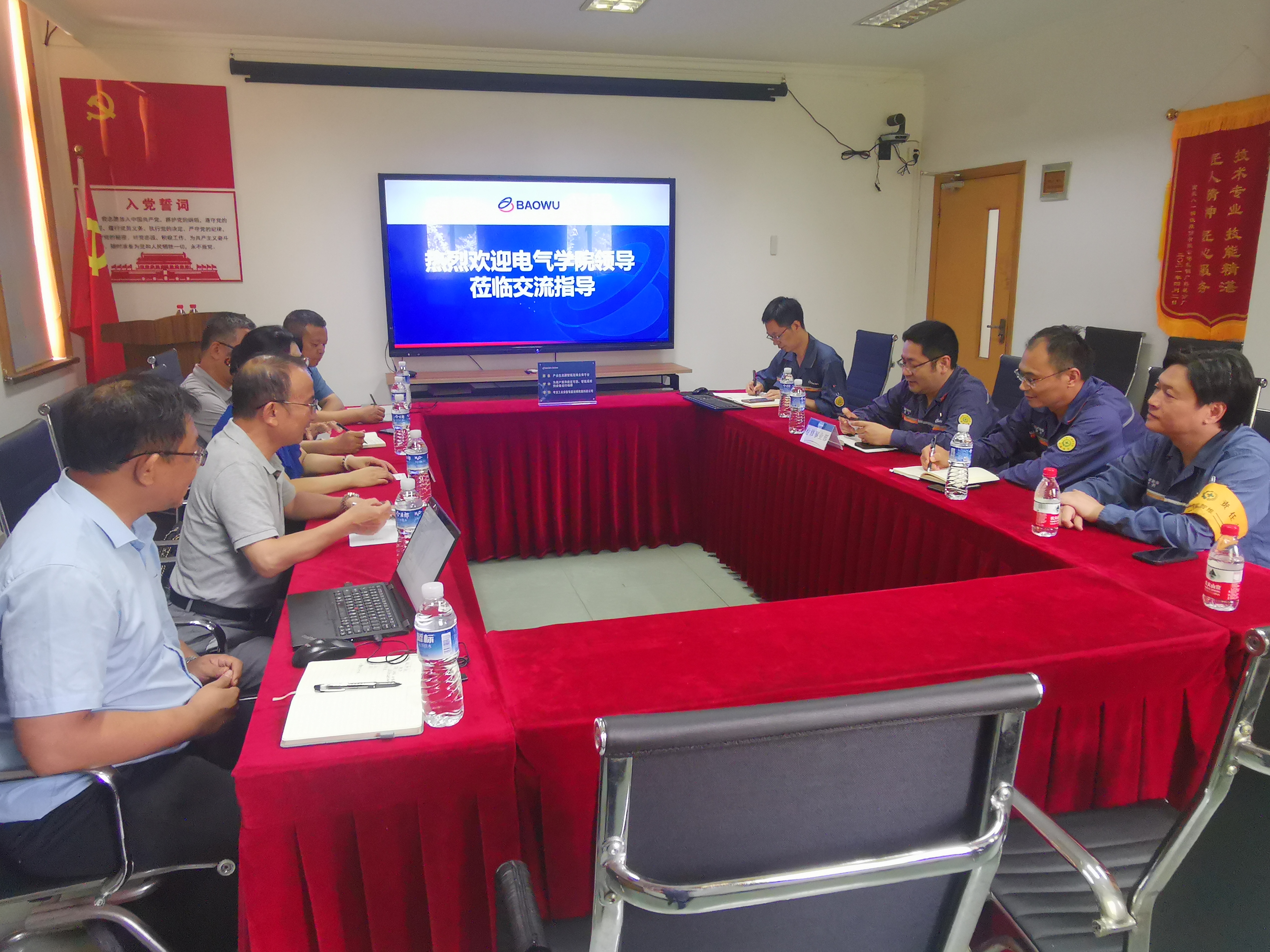 上午在检修事业部,孟宇主持会议并介绍了宝武装备智能科技有限公司与检修事业部的发展历程及科技研发情况。随后,冯肖亮介绍了电气学院的科研情况。双方就昂电卓越工程师班的人才培养情况及无铁芯电机设计与驱动技术、高压电机智能运维技术在钢铁冶金行业的应用开发与合作进行深入探讨。刘俊邀请宝武装备智能科技有限公司嘉宾参加我校70周年校庆活动。