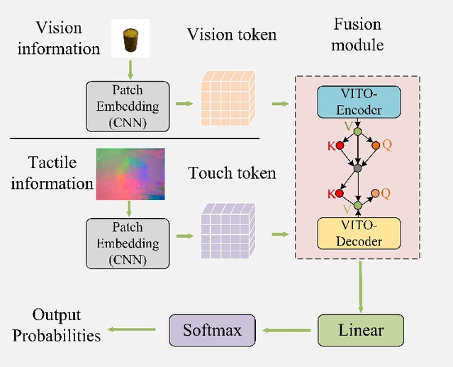 为了解决物体的视觉-触觉多模异构信息难以融合的难题,智能决策与控制技术研究团队提出了一种VITO-Transformer融合网络。在Transformer网络基础上,设计了可以融合视觉和触觉信息的Attention模块,解决了由于视觉和触觉信息差异过大难以融合的问题。得益于这种特殊的融合机制,大幅度提升了物体的识别准确率。最后在公开和自制的视觉-触觉数据集上进行了大量的比较实验,通过与当前流行的网络算法进行比较,验证了提出的VITO-Transformer网络的优势,验证了提出的融合机制的有效性。提出的VITO-Transformer网络,通过特殊的视觉-触觉融合机制,能够处理不同的多模异构信息,给视觉-触觉融合发展领域带来了新的解决方案。(供稿:电气学院)