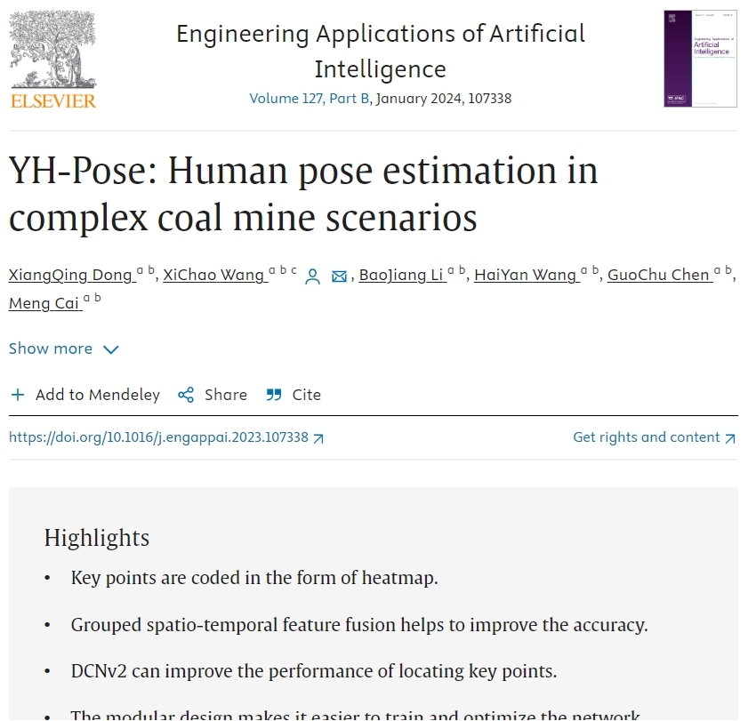 近日,电气学院智能决策与控制技术研究团队在人工智能领域重要期刊Engineering Applications of Artificial Intelligence(IF 8.0,中国科学院二区Top期刊)上发表了题为“YH-Pose: Human Pose Estimation in Complex Coal Mine Scenarios”的学术研究论文。硕士研究生董祥庆为论文第一作者,王西超老师为论文通讯作者,我校为论文第一单位。