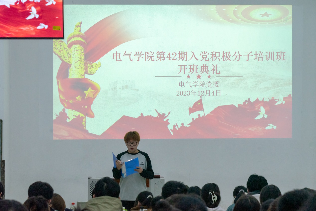 为了加强对入党积极分子的教育工作,深化党的基本理论、基本路线、基本纲领、基本经验教育,电气学院第42期入党积极分子培训班开班典礼于12月4日下午在A教116举行。电气学院党委书记、分党校校长陈国初出席开班仪式并作动员讲话,开班典礼由自动化2315班尹依鑫主持。