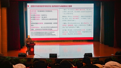 动员会上,卿海龙首先重点围绕学校发展历史、人才培养特色做了校史校情介绍,他以三线建设校友为例,认真回顾老一辈校友走过的路,仔细梳理校友成长规律,总结出技术应用型人才成才的关键“专业知识精、应用能力强、综合素质高”,激励青年学子朝着“知识型、技能型、创新型”高技能人才努力。卿海龙还在此基础上对学校精神、学校校训、办学方略做了生动的阐释,对本科教育教学审核评估“全面落实立德树人根本任务”“以本为本”“四个回归”等理念做了深入解读。对于高年级学生,除了审核评估方面的知识宣讲,卿海龙还着重介绍了近年来电机校友在上海装备制造业的成长情况以及临港新片区区域经济发展特色与优势,有针对性引导学生提前做好职业发展方面的规划。