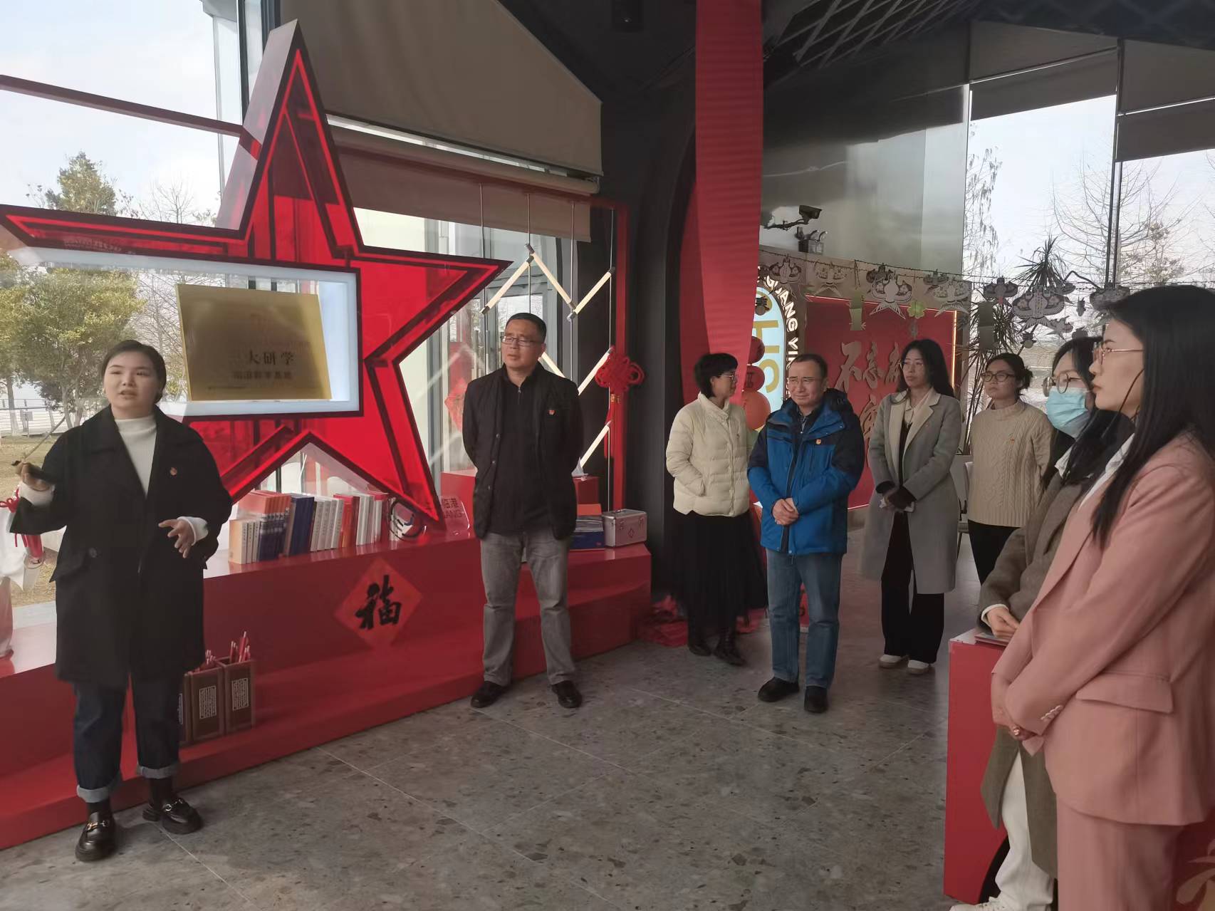 3月7日,电气学院党委书记陈国初、党委副书记卿海龙带队赴首个“一大研学”教学基地——“滴水•湖光”党群服务站参观学习,电气学院党支部书记、辅导员、专职组织员参加。在我校校友、临港管委会办公室邱晓慧和服务站刘骏的带领下,通过聆听讲解了解红色IP“一大文创”等品牌,理解中共一大纪念馆所属品牌“一咖啡”所蕴含的革命故事,沉浸式体验“XR元宇宙场景”和“IP数字人”等前沿科技。