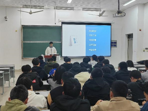 接着轮到电气2114班的刘圣典同学分享,他以电气学院学生会主席的身份,从思想政治、学生工作、科创竞赛、公益贡献以及学业成绩几个方面详细呈现了自己的经验。刘圣典灵活运用丰富的经历,展示了如何在这些方面做到平衡与兼顾,展现了中国青年时代精神的典范。他向同学们提出了以学习为核心的观点,强调了知识在大学生活中的至关重要性。刘圣典分享的过程既富有深意,又颇具幽默感,为广大同学提供了积极向上的学习指引,鼓励大家在知识的海洋中不断提升自我,为自身成长打下坚实基础。