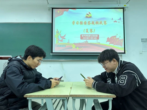 为深入开展学习贯彻习近平新时代中国特色社会主义思想主题教育,充分调动广大学生党员学好、用好“学习强国”学习平台的积极性和主动性。营造“以赛促学、以学促用、比学赶超”的良好氛围,保持党员先进性。2023年11月8日(周三)18:30,电气学院第七党支部组织了电气学院72名学生在电气楼301室举办“学习强国答题挑战赛”。
