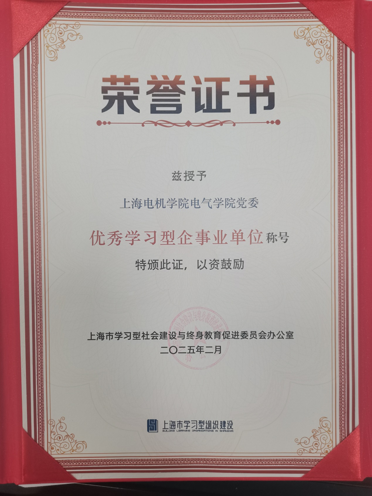 近日,上海市学习型社会建设与终身教育促进委员会办公室公布上海市优秀学习型组织名单,电气学院党委荣获“2024年上海市优秀学习型企事业单位”称号。