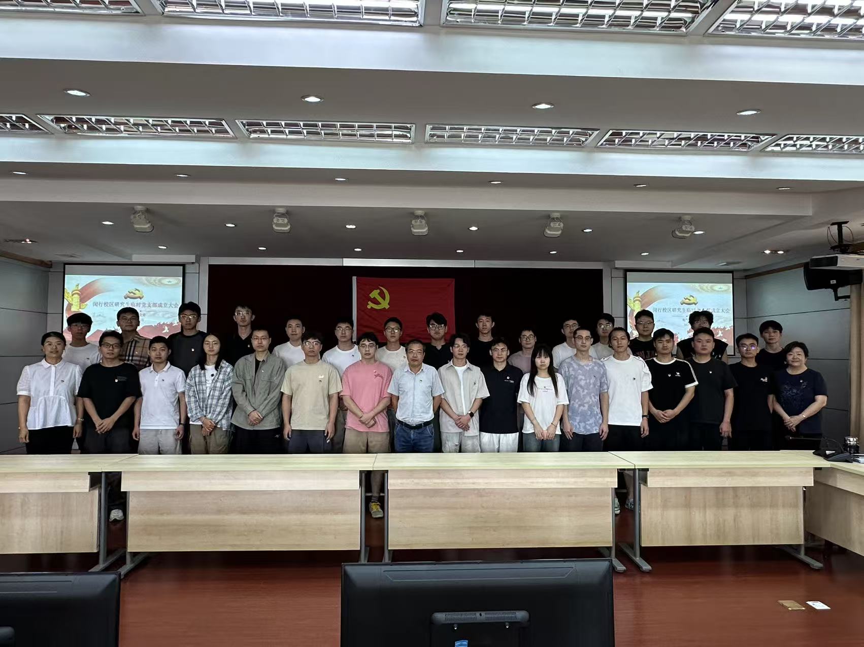 会议最后,全体起立奏唱《国际歌》,电气学院闵行校区研究生临时党支部成立大会圆满结束。此次临时党支部的成立,是学院加强搬迁后研究生党建工作的创新举措,将为闵行校区研究生思想政治教育与成长成才提供坚强组织保障,助力形成党建与育人深度融合的良好格局。