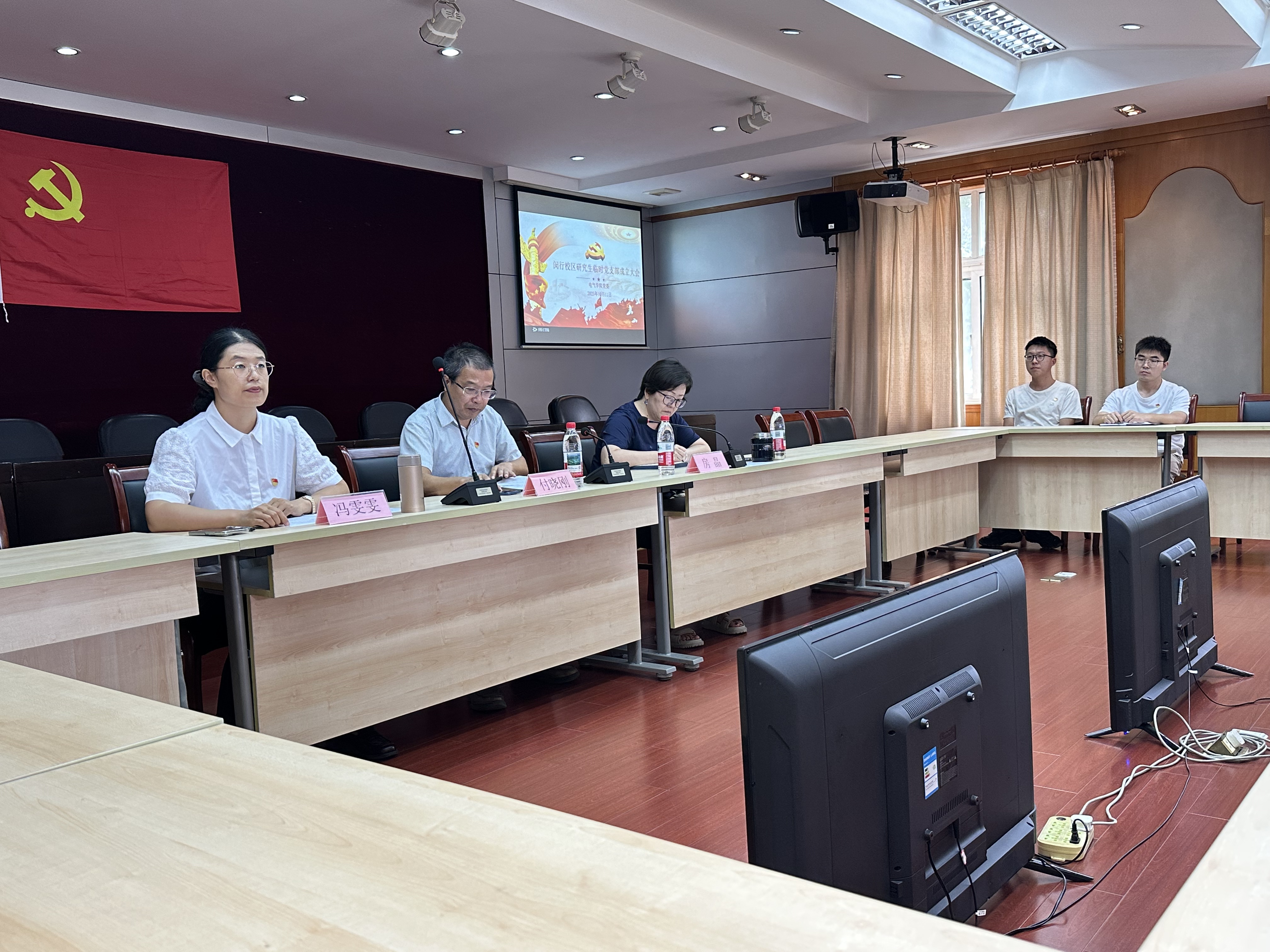 为深入贯彻党的二十大关于“增强基层党组织政治功能和组织功能,坚持大抓基层的鲜明导向”的要求,落实《中国共产党支部工作条例(试行)》与《中国共产党思想政治工作条例》的文件精神,电气学院党委秉承“学思用贯通 知信行统一“的党建思维,积极传承“支部建在连上”的光荣传统,坚持全党动手、全面覆盖,坚持做在日常、落在基层的原则,将战斗堡垒建在研究生思想政治教育最薄弱的地方。近日,电气学院闵行校区研究生临时党支部成立大会在闵行校区办公楼1302会议室召开。电气学院党委书记付晓刚,党委副书记、副院长房晶,党委委员、专职组织员冯雯雯以及闵行校区研究生党员全体同志出席会议。