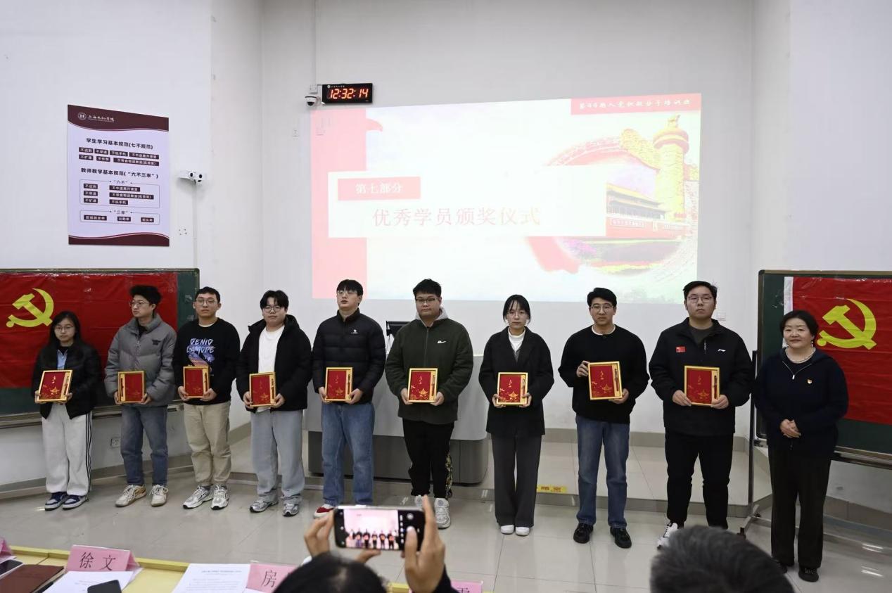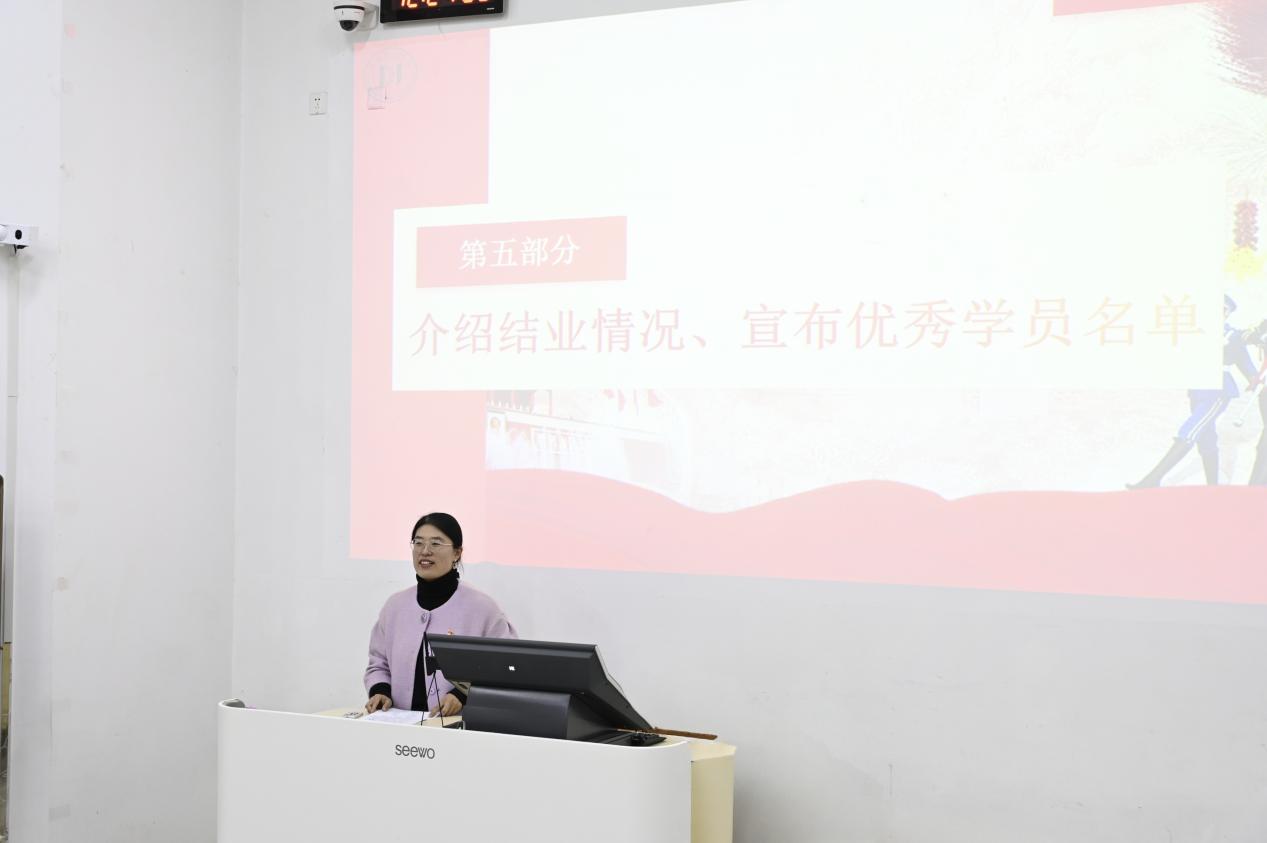 随后,学院专职组织员冯雯雯老师代表学院分党校对本期培训班的结业情况进行全面介绍并宣布优秀学员名单,她表示本期党校全体学员都展现出了极高的学习热情与良好的纪律素养,无论是理论课堂上的积极互动,还是实践活动中的主动担当,都充分彰显了入党积极分子的优良风貌。经综合评定,162名学员顺利结业,并评选出电25606邢俊昊、昂电2411涂宇翔在内的18名同学为优秀学员。