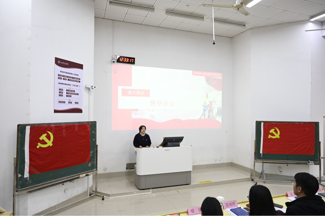 她首先对顺利结业的全体学员表示祝贺,对辛勤付出的党校授课教师与参与组织的师生表示感谢。她表示,这次培训整体展现了学员们从“思想认同”到“行动自觉”的升华,达到了党的理论内化于心、外化于行的效果,她以“三个坚持”寄语本期入党积极分子的全体学员。一是坚持理论学习,筑牢信仰之基。入党积极分子培训班结业不是学习的终点,而是践行初心使命的新起点,全体学员要持续深化理论学习,将培训所学转化为实际行动,成为政治上的“明白人”;二是坚持知行合一,彰显先锋本色。希望大家积极参加学校学院的各类社会实践、志愿服务、科创竞赛活动,多深入生活,了解社会,要主动亮身份、做表率,在急难险重任务中冲锋在前,在服务同学中倾注真情,在创新发展中敢于突破;三是坚持自我革命,永葆清正本色。要时刻警惕学生干部队伍中的官僚作风,在工作中、面对诱惑时多问一句“是否符合党员标准”,面对困难时多想一步“如何体现担当”,面对群众时要优先考虑“是否维护了群众的利益”,只有经得起各方的考验,才能赢得组织信任和群众拥护。展望未来,她希望全体入党积极分子在岗位上争做“排头兵”,用初心证明价值;在服务中争做“领头羊”,用行动温暖身边人;在实践中争做“先行者”,用信念铸就信仰。坚定不移听党话、跟党走,心怀理想、勇担重任,吃苦耐劳、砥砺奋斗,将个人发展同建设具有航空航天特色的全面示范应用技术大学的学校发展目标结合起来,敢想敢为又善作善成,用坚定的信念铸就红色信仰,让自身价值与组织需要同频共振,做到未进党的门、先做党的人。